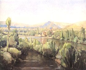 Les bords du Lot. Le moulin de Labéraudie - vers 1950 - Huile sur toile - 60 x 73 cm