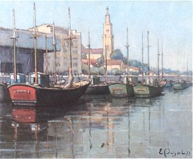 Le port de pêche d'Arcachon - vers1973 - Huile sur toile - 46,5 x 55,5 cm