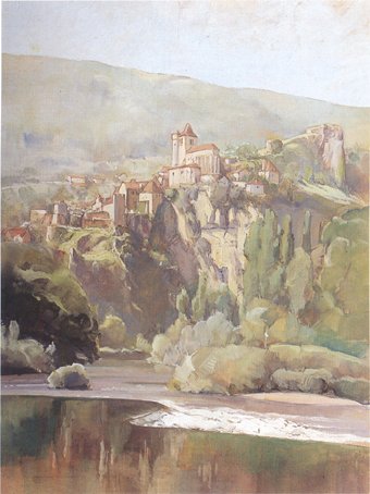 Saint Cirq Lapopie - vers 1937 - Dessin gouaché - 63,5 x 47,8 cm