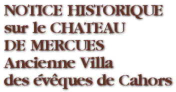 * A la vue de ce site remarquable, en présence de cet édifice majestueux, renfermant les portraits précieux des évêques de Cahors et les armoiries de ces seigneurs si puissants au moyen âge, en réfléchissant sur tous ces reflets de grandeur, qui ne sont plus, on comprend le rôle important que le château de Mercuès a dû jouer dans les guerres de la province, linfluence que, par la voix de ses prélats, léglise exerçait sur les peuples, et les efforts que plusieurs évêques du Quercy ont faits, pour sauver lindépendance de leur pays contre linvasion anglaise. A leur tête brillent Bertrand de Cardaillac et Bec de Castelnau.